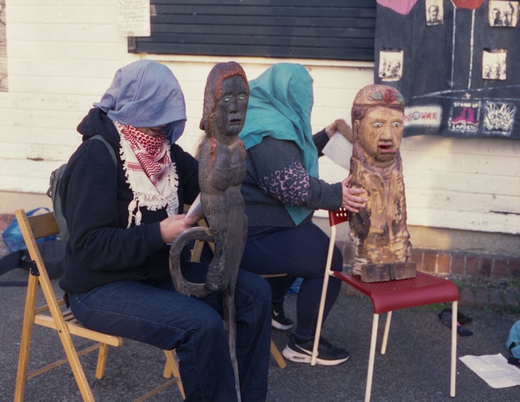 Some of the characters form through conversation, sometimes even as jokes, with people in the campaign. As I carve them, we talk about what is emerging and adjustments are made. This way of working feels like a kind of collective dreaming; perhaps closer to the kinds of shared culture people had many years ago.